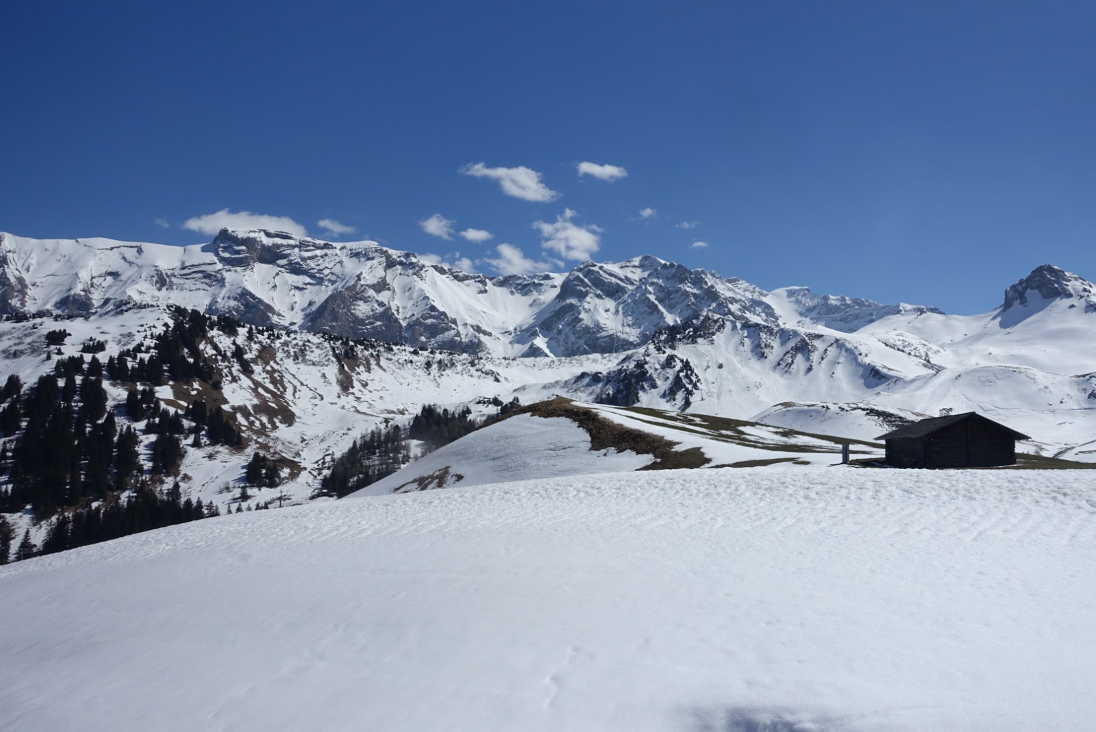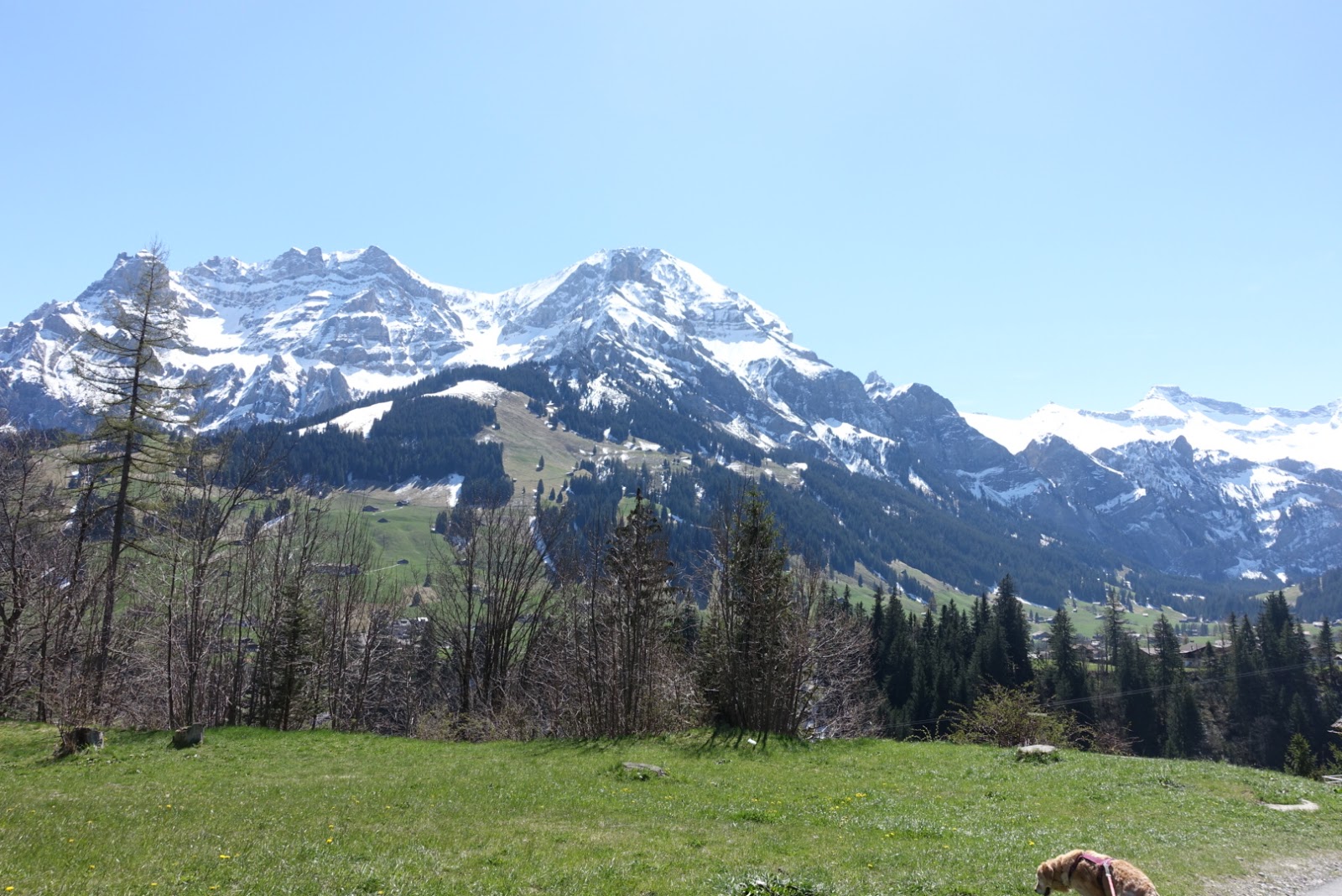 Auf dem Hanenmoss machen wir nochmals eine kurze Pause. Wir blicken auf die Bergwelt; Mama bekommt von mir auch eine kleine Berglehre. Ich kenne leider noch viel zu wenige Berge, aber nach und nach erweitere ich mein Wissen. Dank der PeakFinder App finden wir auch den Wildstrubel. Der Weg Richtung Lenk führt uns einen Teil der Skipiste entlang. Die Wintersaison ist aber auch hier zu Ende; so bleiben wir drei Mädels weiterhin ganz alleine unterwegs. Der Abstieg mit Shila ist wie immer etwas anstrengend und mühsam. Ich bin aber froh um den Bauchgurt. Obwohl wir schon einige Stunden unterwegs sind, hat Shila beim Runterlaufen wieder genügend Energie. Nach 15 Km erreichen wir die Lenk. Die Wanderung hat 730 Höhenmeter und wir waren 5,5 h unterwegs (gemütliches Tempo). Es ist eine sehr angenehme Wanderung. Unterwegs hat man einen tollen Ausblick auf die Bergkette vom Berneroberland.