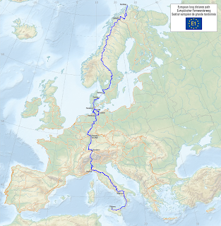 Mir stach natürlich gleich der Europäischer Fernwanderweg E1 ins Auge. Dieser führt schliesslich durch Schweden. Zudem startet er am Nordkap, wo ich ja sowieso hinwollte. Nach dem Kinobesuch ratterte es in meinem Kopf nur noch. Konnte ich dieses Projekt wirklich machen; bin ich körperlich und geistig in der Lage dazu? Was bedeutet es ein solches Unternehmen zu realisieren? Unendlich viele Gedanken, die durch mein Kopf schwirrten. Klar war, dass ich Shila nicht mitnehmen könnte. Sie ist zu alt um diese Tour zu machen. Der Europäischer Fernwanderweg ging mir aber nicht mehr aus dem Kopf.