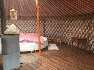 Hinter dem Restaurant waren einige Jurten aufgestellt und wir liessen es uns nicht nehmen kurz in eine reinzuschauen. Eine Übernachtung in einer Jurte mit Hotpot Benutzung wäre natürlich auch nicht übel.