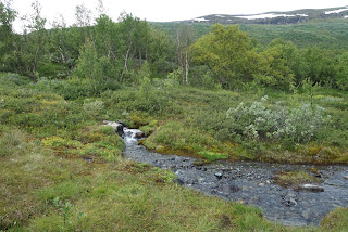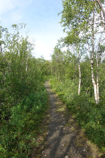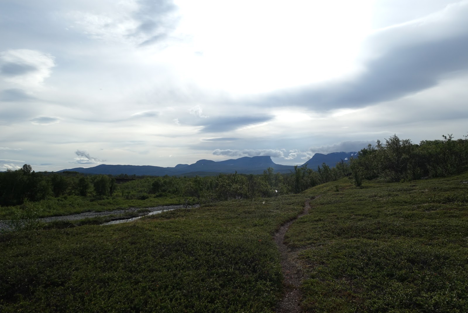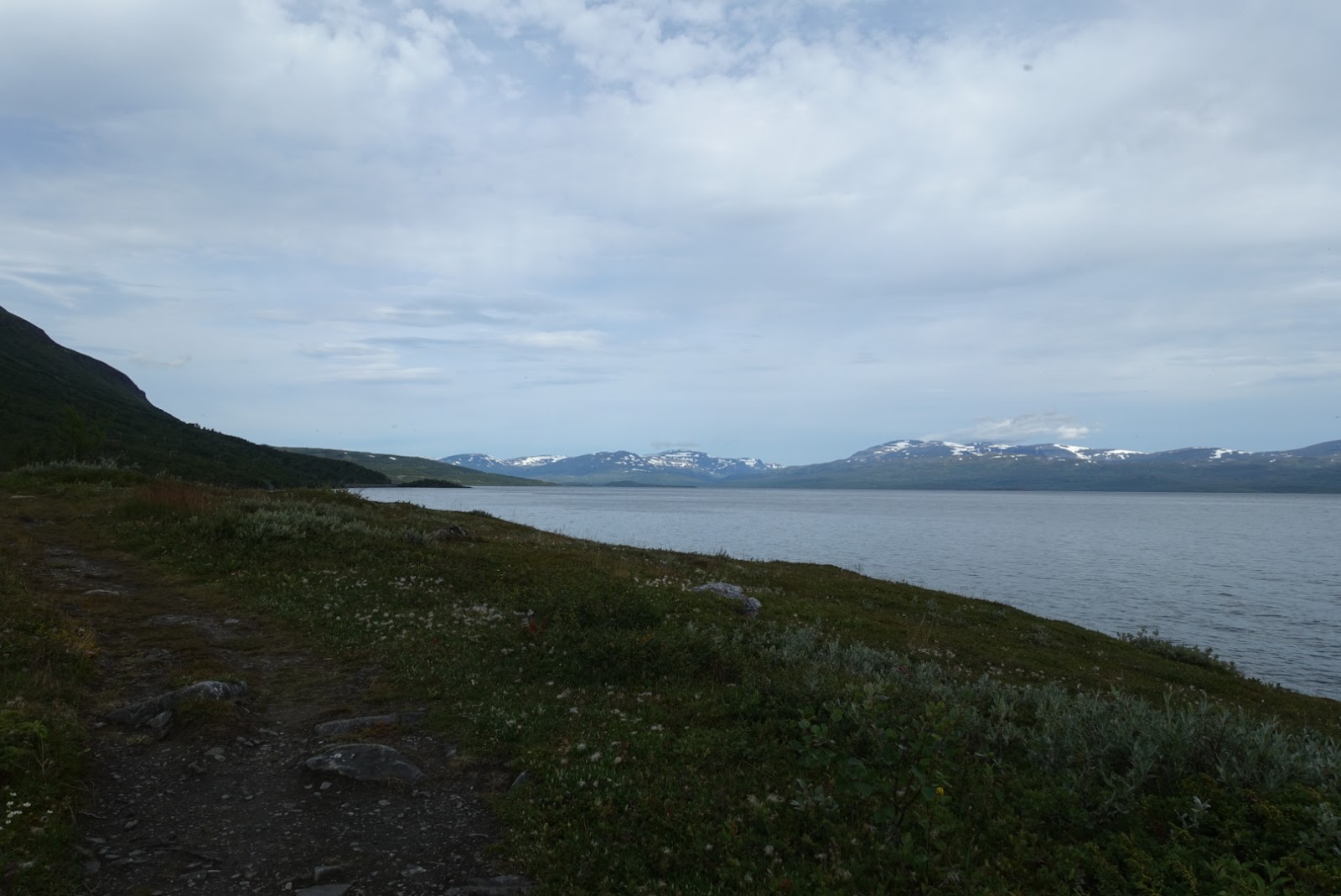 Am Freitag geht es dann am Morgen für mich weiter auf dem E1. Der Weg führt entlang des Sees Richtung Norwegen. Diese Etappe würde bis zur Hütte Palnostugan führen. Da ich aufgrund der fehlenden ÖV Verbindungen aber wieder zurücklaufen darf, komme ich nicht ganz bis zur Hütte. Am See gibt es einige einsame Plätzchen, die sich gut als Zeltplatz eignen würden. Der Weg ist recht einfach zu gehen. Nur habe ich den Mückenspray heute vergessen und werde prompt von den Blutsaugern attackiert. Das ganze auf so eine penetrante Art und Weise, dass ich doch leicht genervt bin. Immerhin weiss ich nun, dass in jedem Versorgungspacket für den E1 sicher Mückenspray sein wird.
