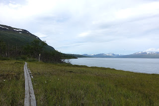 Am Freitag geht es dann am Morgen für mich weiter auf dem E1. Der Weg führt entlang des Sees Richtung Norwegen. Diese Etappe würde bis zur Hütte Palnostugan führen. Da ich aufgrund der fehlenden ÖV Verbindungen aber wieder zurücklaufen darf, komme ich nicht ganz bis zur Hütte. Am See gibt es einige einsame Plätzchen, die sich gut als Zeltplatz eignen würden. Der Weg ist recht einfach zu gehen. Nur habe ich den Mückenspray heute vergessen und werde prompt von den Blutsaugern attackiert. Das ganze auf so eine penetrante Art und Weise, dass ich doch leicht genervt bin. Immerhin weiss ich nun, dass in jedem Versorgungspacket für den E1 sicher Mückenspray sein wird.