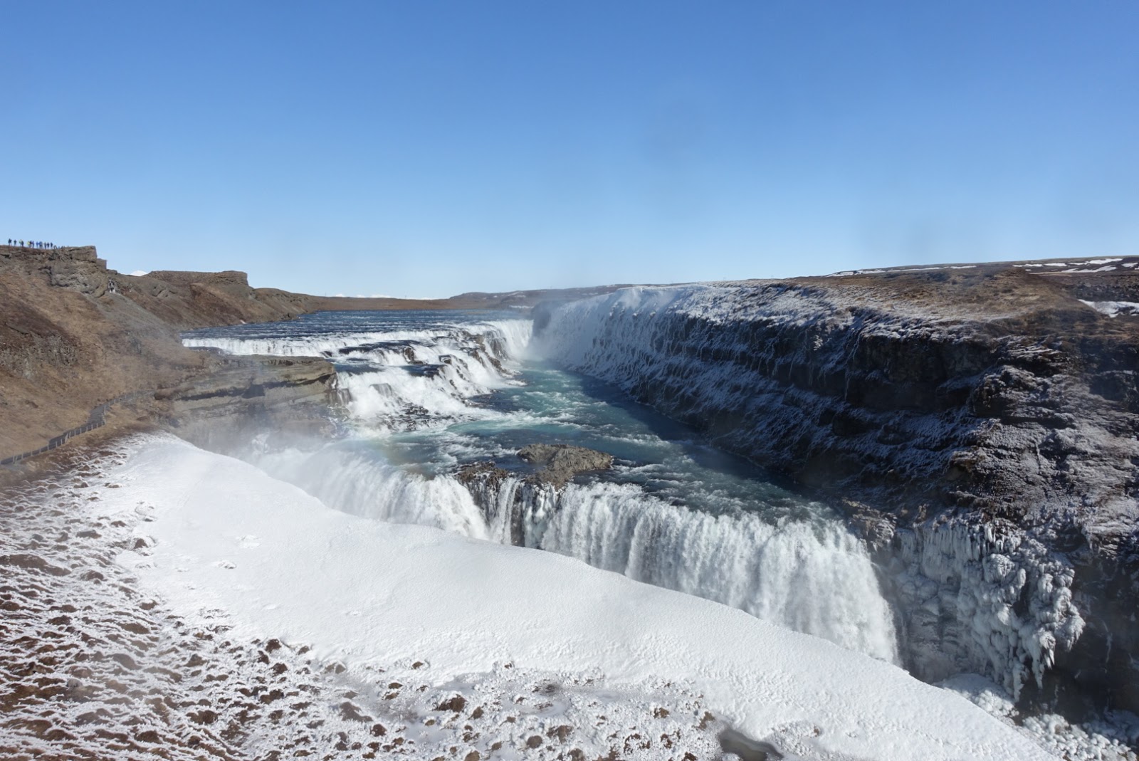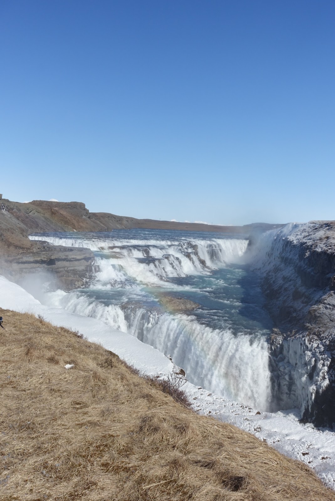 Als wir den Gullfoss erblicken ist sofort klar, weshalb er der berühmteste Wasserfall in Island ist. Ich denke, die Bilder sprechen für sich. Wieder einmal schiesse ich unzählige Bilder. Ich versuche den Anblick tief in meinem Herzen zu speichern. Ich stehe oberhalb des Wasserfalls und kann mich kaum satt sehen daran.