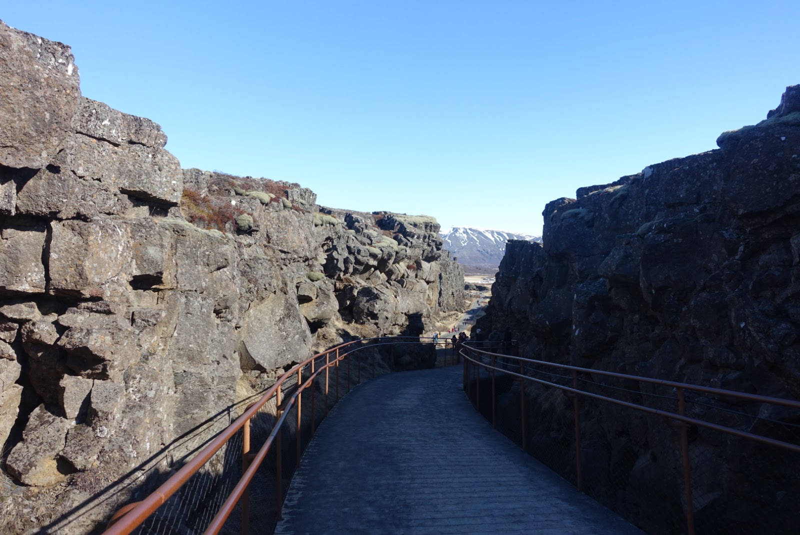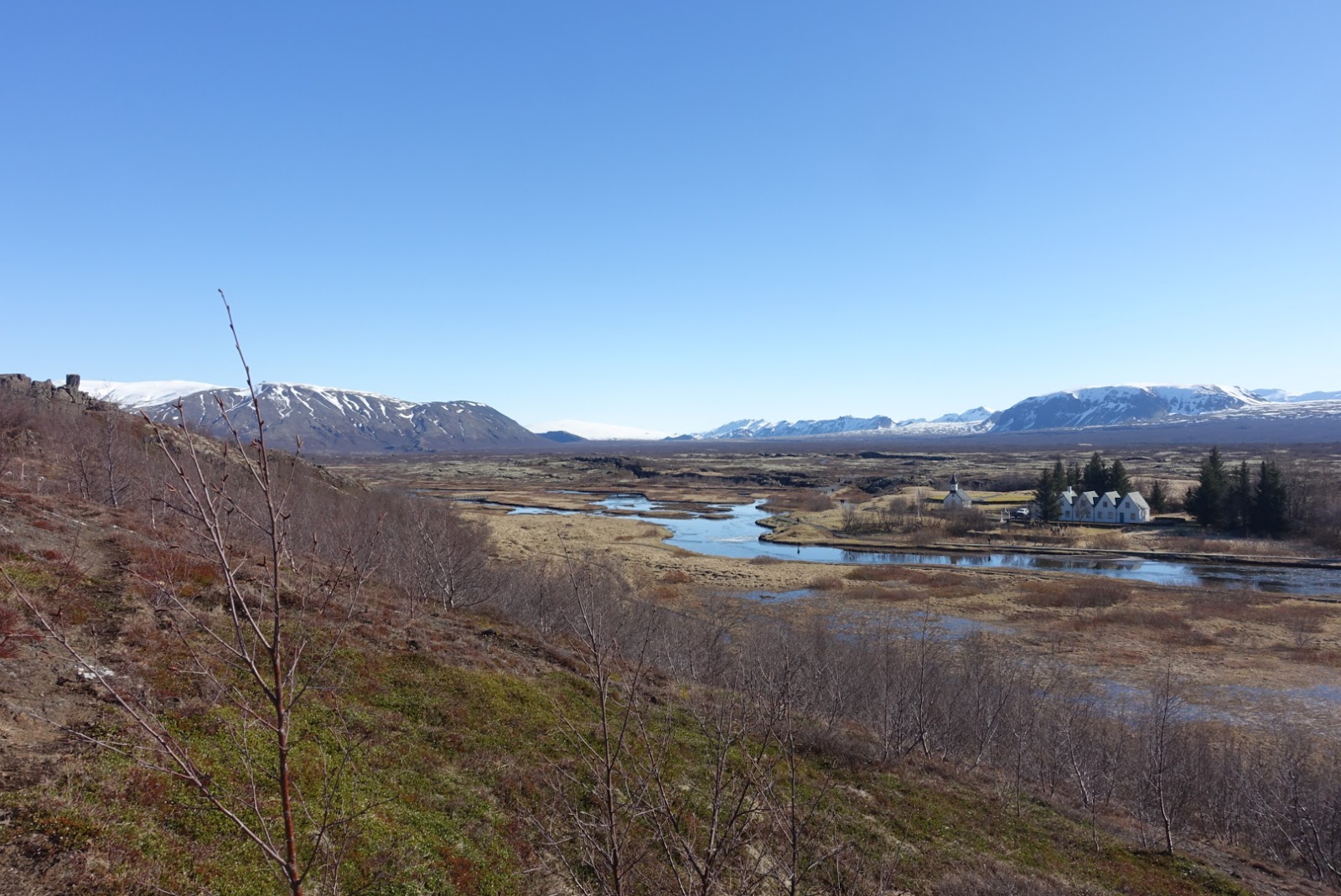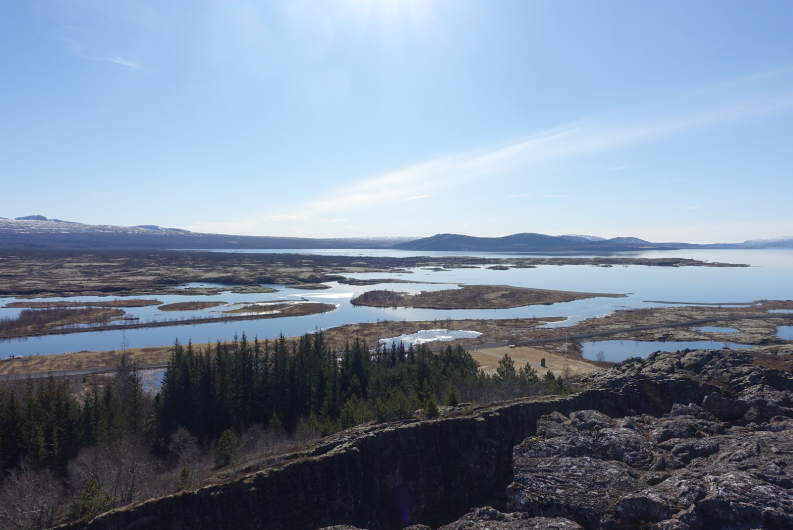 Unser letzter Stopp im Nationalpark ist in der Nähe vom Besucherzentrum Pingvellier. Nach einem kurzen Fussmarsch haben wir einen eindrücklichen Ausblick über den Nationalpark. Wir schauen über den grössten See von Island dem Pingvallatn und sehen den eindrücklichen Grabenbruch voller Spalten, die durch das Auseinanderdriften der amerikanischen und eurasischen Kontientplatten entstand.