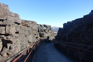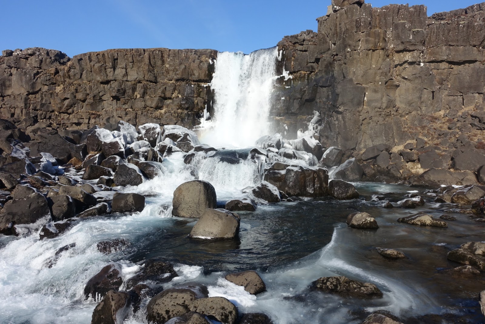 Pingvellir – ein wunderschöner Nationalpark. Der Grabenbruch zwischen den Kontientalplatten ist hier gut zu sehen. Wir fahren gemütlich durch den Park. Unser erster Stopp legen wir beim Öxarafoss ein. Im Becken von diesem Wasserfall wurden früher Frauen ertränkt, die des Kindsmordes, des Ehebruchs oder anderen, schwerwiegenden Vergehen beschuldigt wurden. Obwohl wir nun einige Wasserfälle gesehen haben, sind wir wieder einmal beeindruckt. Auch hier lohnt es sich einen Stopp einzulegen.