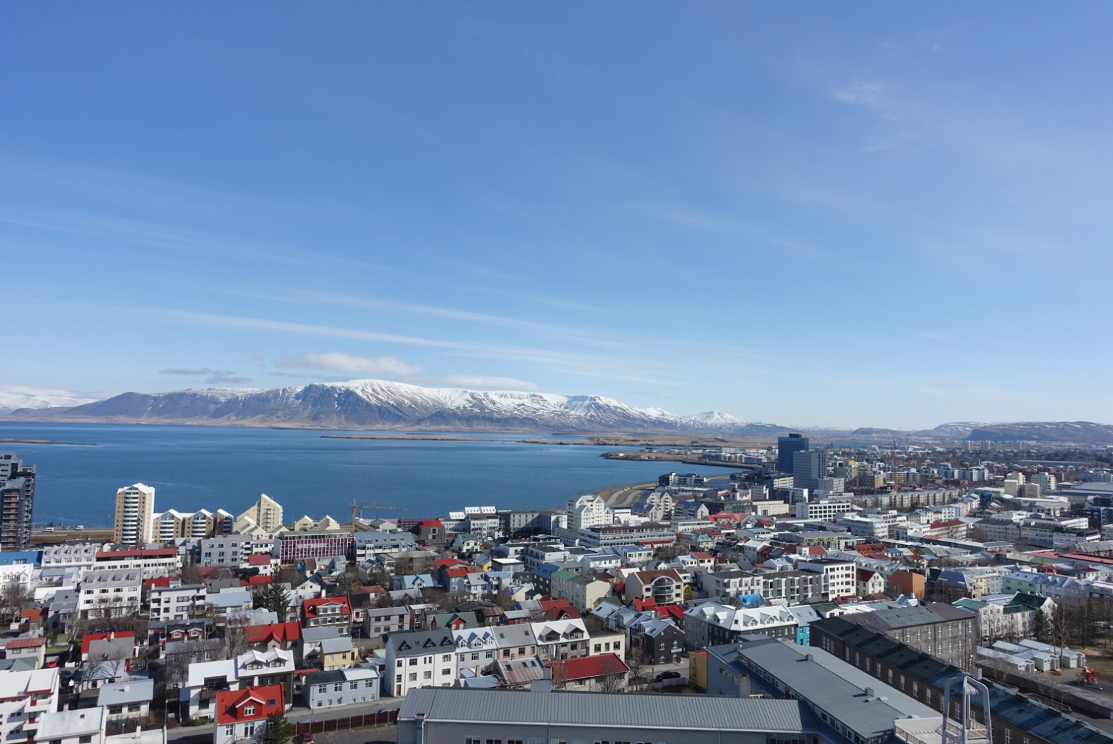 Am nächsten Tag geht es weiter nach Reykjavik. Auch wenn ich weiss, dass wir noch 3 Tage dort verbringen, so wird mir unweigerlich bewusst, dass unsere Reise langsam dem Ende entgegengeht. Wir beschliessen den Samstag zum Shoppen zu nutzen. Am Samstag haben alle Geschäfte noch geöffnet, was am Ostermontag eher nicht der Fall sein wird. Wir fahren eine knappe Stunde bis in die Hauptstadt. Die meisten Geschäfte haben aber erst später geöffnet. Wir nehmen ein 2. Frühstück in einer behaglichen Bäckerei zu uns. Anschliessend geht unsere Shopping- und Besichtigungstour durch Reykjavik los. Zuerst gehen wir zur Kirche Hallgrimskirkja. Die Kirche ist die grösste im Land und das zweit höchste Gebäude in ganz Island. Der Kirchturm kann mit einem Lift befahren werden. Von der Aussichtsplattform bietet sich ein grandioser Blick über die farbenfrohe Stadt. Im Hintergrund sieht man die schneebedeckten Berge. Ich geniesse den Moment und sauge diesen Ausblick tief in mich ein. Obwohl ich nicht ein Stadtmensch bin, sondern lieber in der Natur meine Zeit verbringe, so fasziniert mich diese Stadt dennoch. Sie wirkt sauber und durch die bunten Häuser sehr leicht und fröhlich. Ich mag die farbenreiche Umgebung.