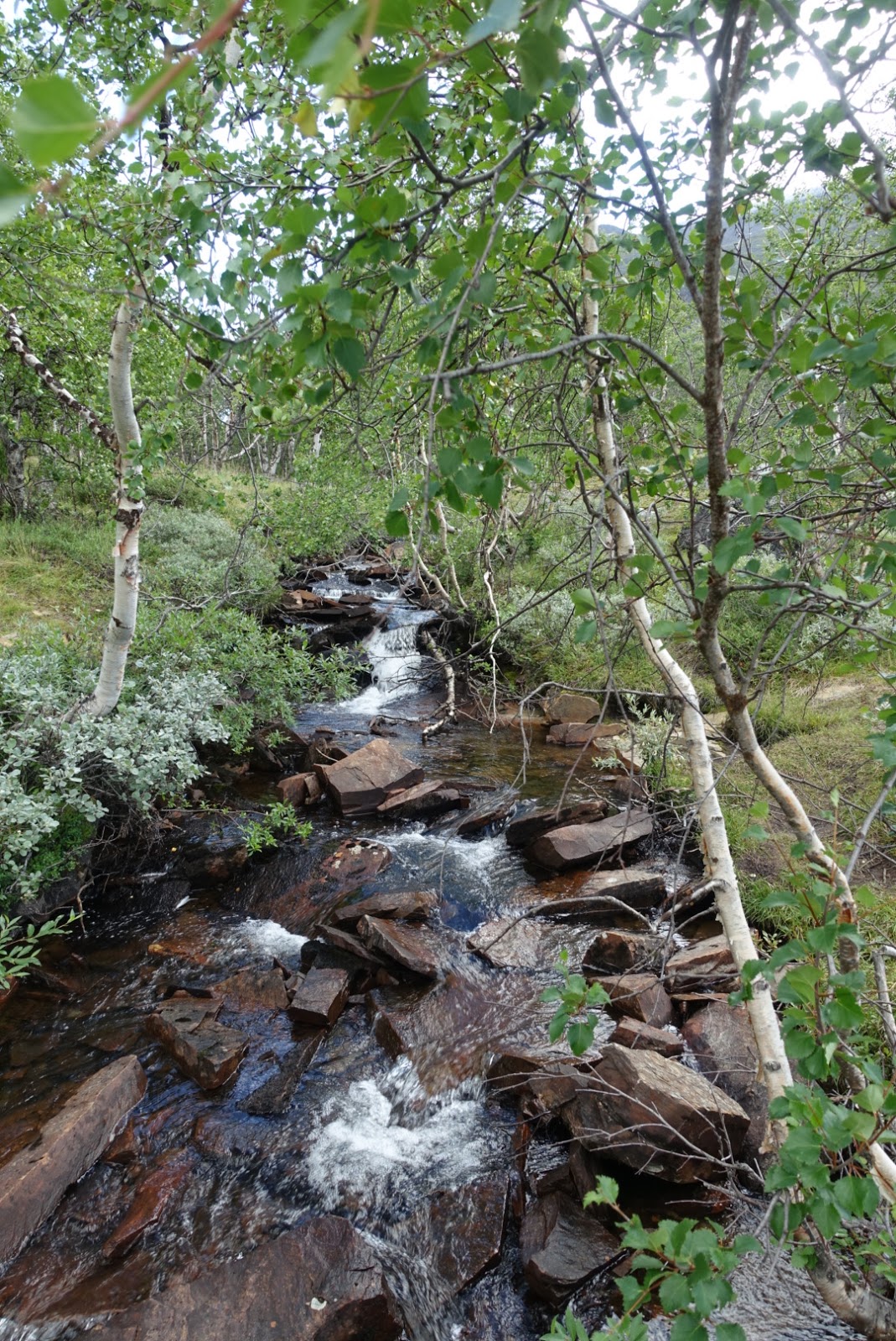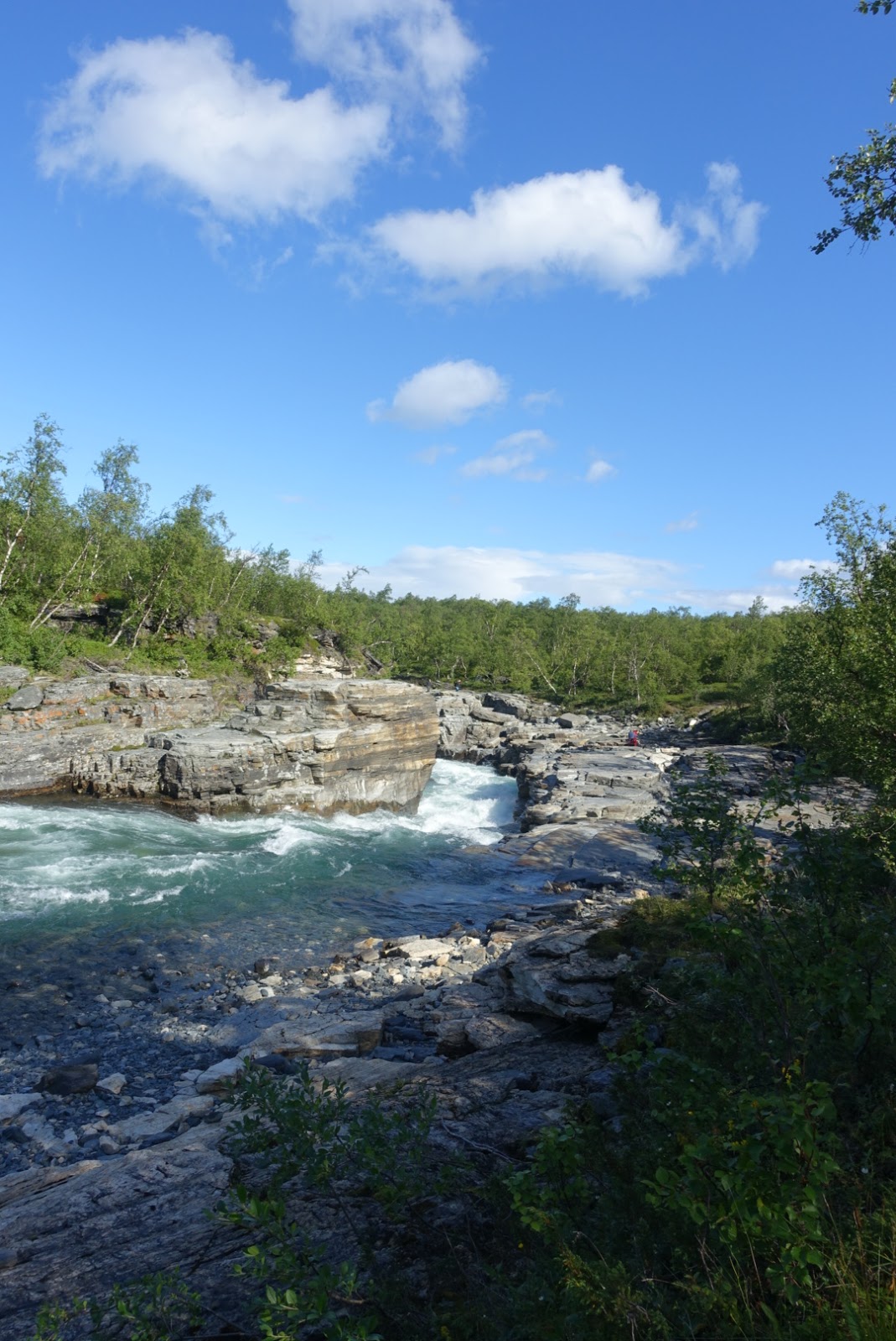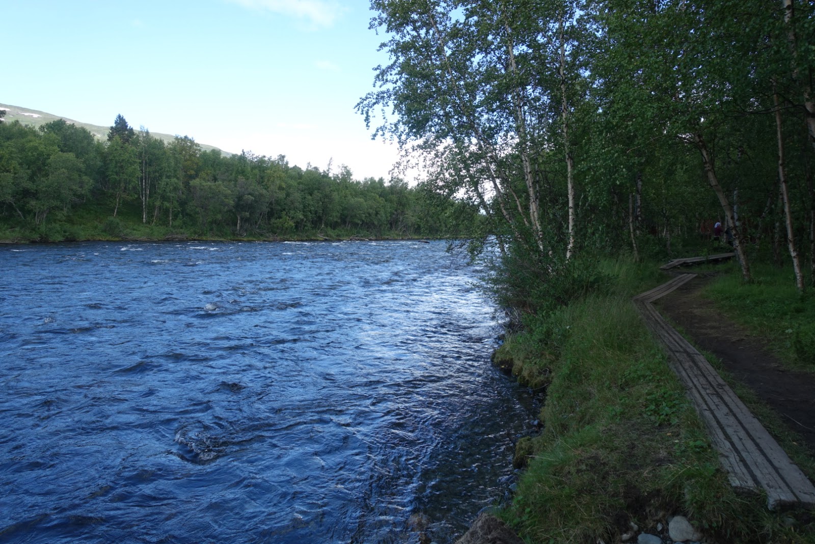 8 Km geht es längs des Abiskujavri Sees entlang. Ich mache heute mehr Pausen als in den letzten Tagen und mache auch viele Fotos. Viel zu schnell kommt das Classic Schild mit dem Hinweis das ich in 5 Km mein Ziel erreicht habe. Ich bin wohl eine der Wenigen, die sich nicht über dieses Schild freuen kann. Kurze Zeit später erreiche ich einen Aussichtsplatz, der mich auf einen kleinen Canyon blicken lässt. Anscheinend gibt es ab hier wieder Handyempfang. Ich setze mich kurz hin und geniesse den Moment. Mein Handy bleibt aber noch im Flugmodus. Die letzten 5 Tage ohne Handy haben mir so gut getan, dass ich noch nicht bereit dazu bin meine Offline Zeit abzubrechen.