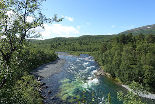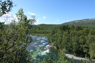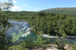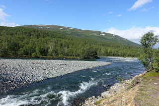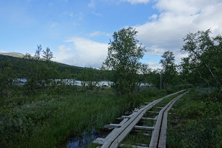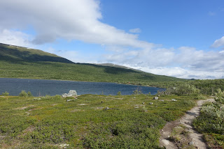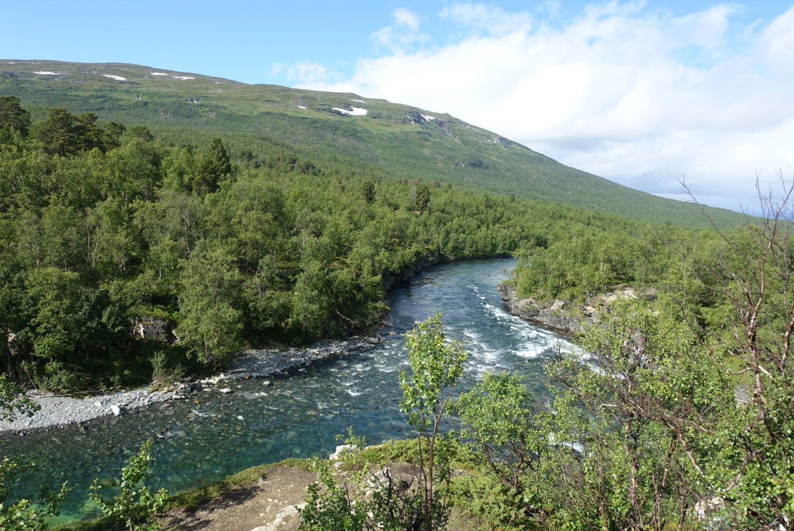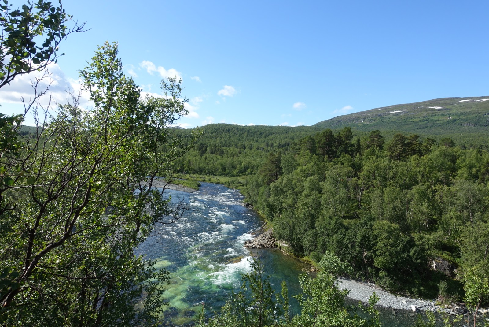 8 Km geht es längs des Abiskujavri Sees entlang. Ich mache heute mehr Pausen als in den letzten Tagen und mache auch viele Fotos. Viel zu schnell kommt das Classic Schild mit dem Hinweis das ich in 5 Km mein Ziel erreicht habe. Ich bin wohl eine der Wenigen, die sich nicht über dieses Schild freuen kann. Kurze Zeit später erreiche ich einen Aussichtsplatz, der mich auf einen kleinen Canyon blicken lässt. Anscheinend gibt es ab hier wieder Handyempfang. Ich setze mich kurz hin und geniesse den Moment. Mein Handy bleibt aber noch im Flugmodus. Die letzten 5 Tage ohne Handy haben mir so gut getan, dass ich noch nicht bereit dazu bin meine Offline Zeit abzubrechen.