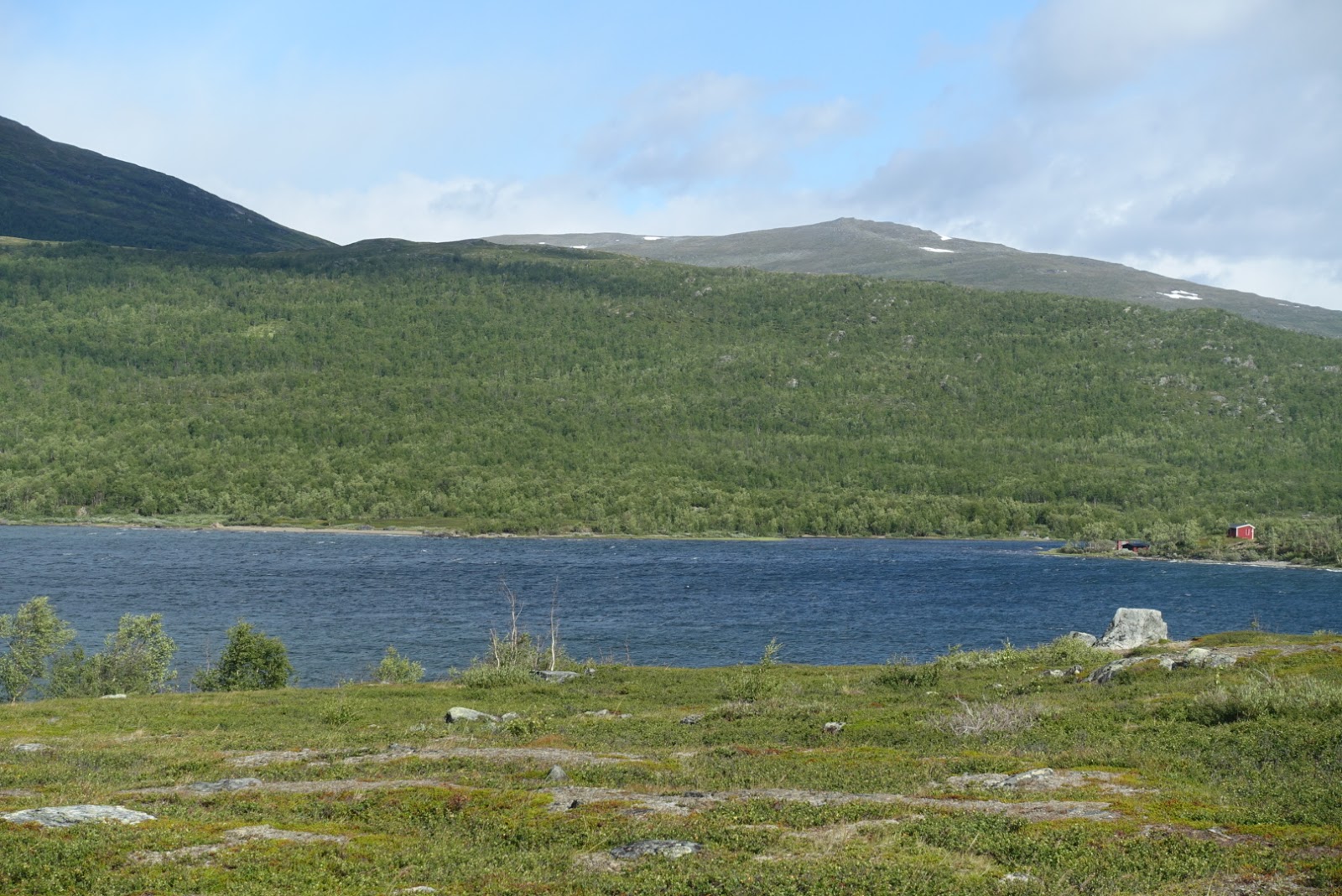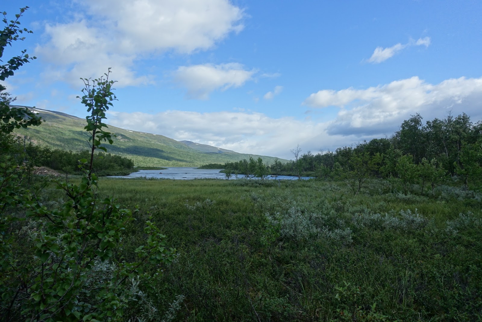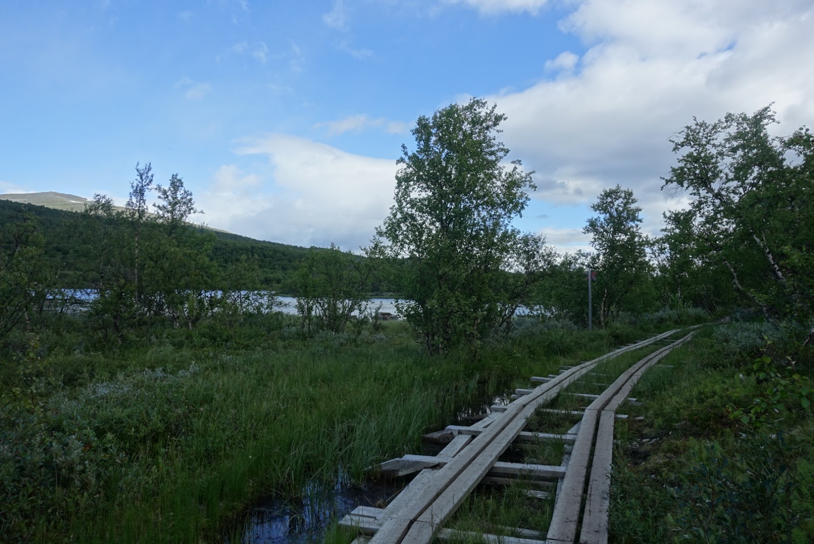 Der Weg durch den Nationalpark ist sehr angenehm zum Wandern. Nach den letzten Tagen bin ich froh das meine Füsse über keine Steine mehr gehen müssen. Die Landschaft verändert sich nun deutlich. Ich laufe heute viel durch den Birkenwald des Nationalparks. Auch begegnen mir hier wieder mehr Wanderer als in den letzten Tagen. Ganz viele „Hej Hej’s“ gibt es somit wieder unterwegs.