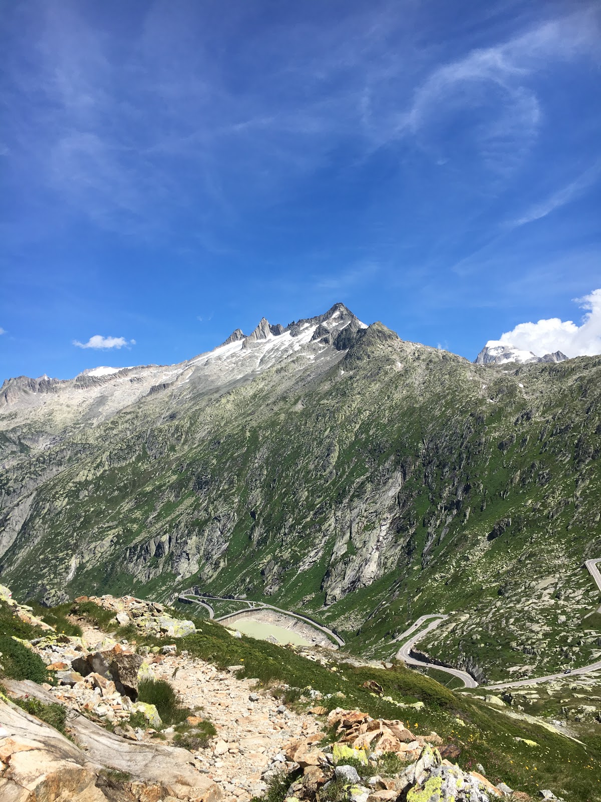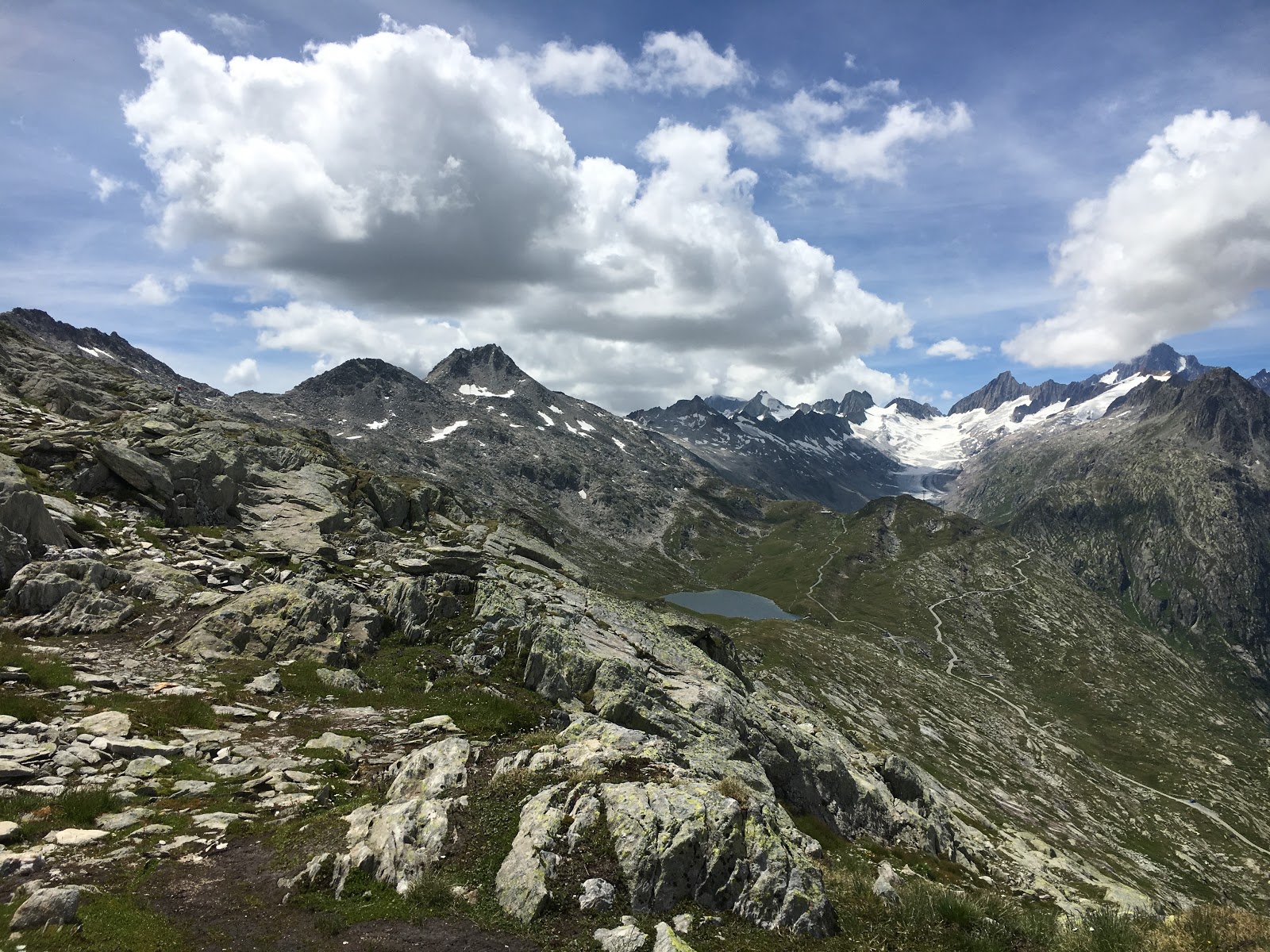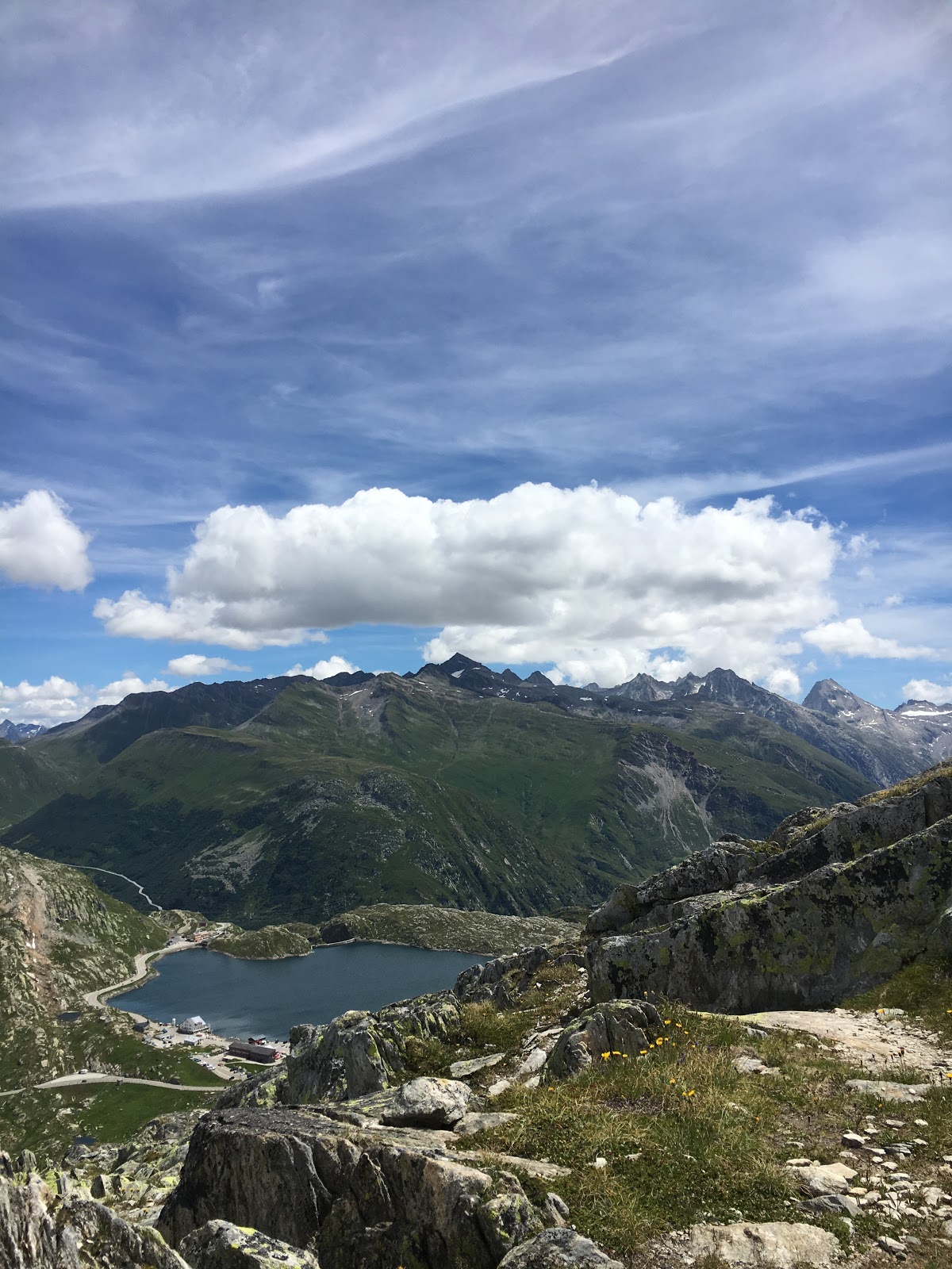 Wir starten beim Pass und ich entscheide mich den Bergweg zu nehmen. Zum See führen zwei Bergwanderwege, zudem besteht die Option die Panormastrasse als Wanderweg zu nutzen.