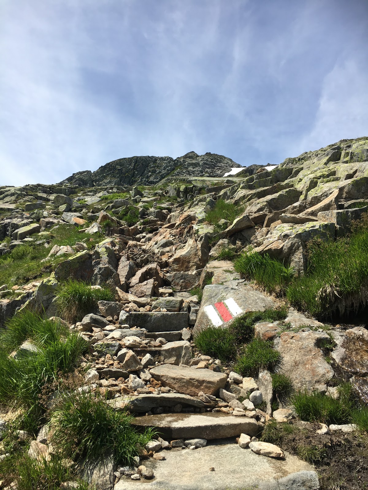 Die Entscheidung den Bergwanderweg zu nehmen, ist aber definitiv die Richtige gewesen. Der erste Teil führt steil den Berg hoch, aber man wird für jeden Schritt mit einer tollen Aussicht belohnt. Ich merke auch wieviel einfacher das Hochsteigen für mich ist dank den 6 statt 20 Kg auf dem Rücken. Herrlich und richtig befreiendes Gefühl so ohne zusätzliche Last zu gehen.