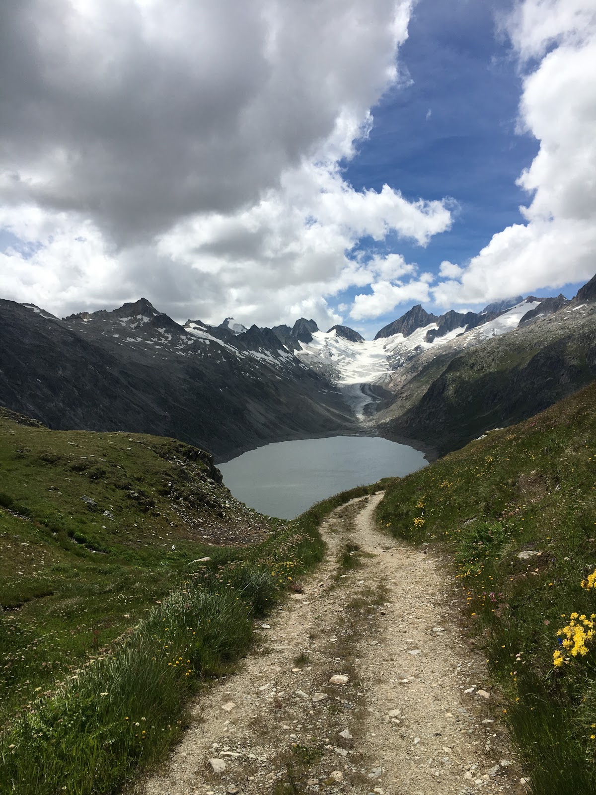 Nach einigen hundert Metern verläuft der Bergwanderweg deutlich flacher. Wir laufen oberhalb entlang des Grimselsees entlang und erreichen nach 4 km den Triebtenseewli. Nach diesem Bergsee geht es nochmals ca. 1 Kilometer in die Höhe, bevor der Abstieg zum Berggasthaus Oberaar ansteht. Ich habe fast keinen Akku mehr, habe aber noch das Glück zumindest ein Foto vom Oberaarsee machen zu können. In Zukunft sollte ja dank Dura Case dieses Problem nicht mehr vorkommen.