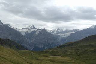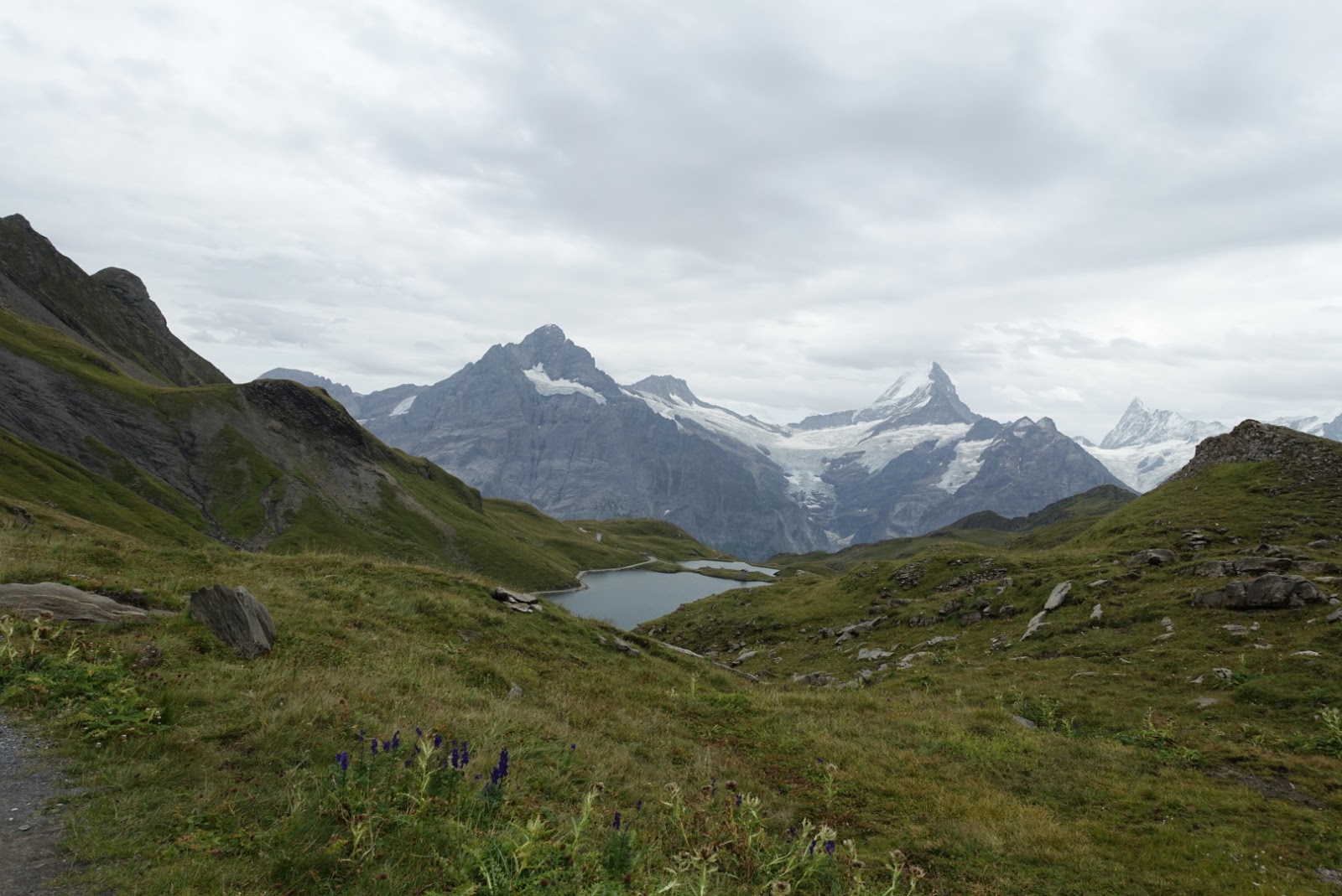Am Sonntag früh ging es dann los. In Interlaken wollten wir Tom treffen um dann gemeinsam mit dem Zug nach Grindelwald zu fahren. Das Wetter spielte dann leider nicht wirklich mit. Tolle, sonnige Fotos am Bachalpsee konnte ich mir also abschminken. Auch die Achillessehne von Tom wollte nicht mitspielen, so dass er uns leider nicht begleiten konnte.