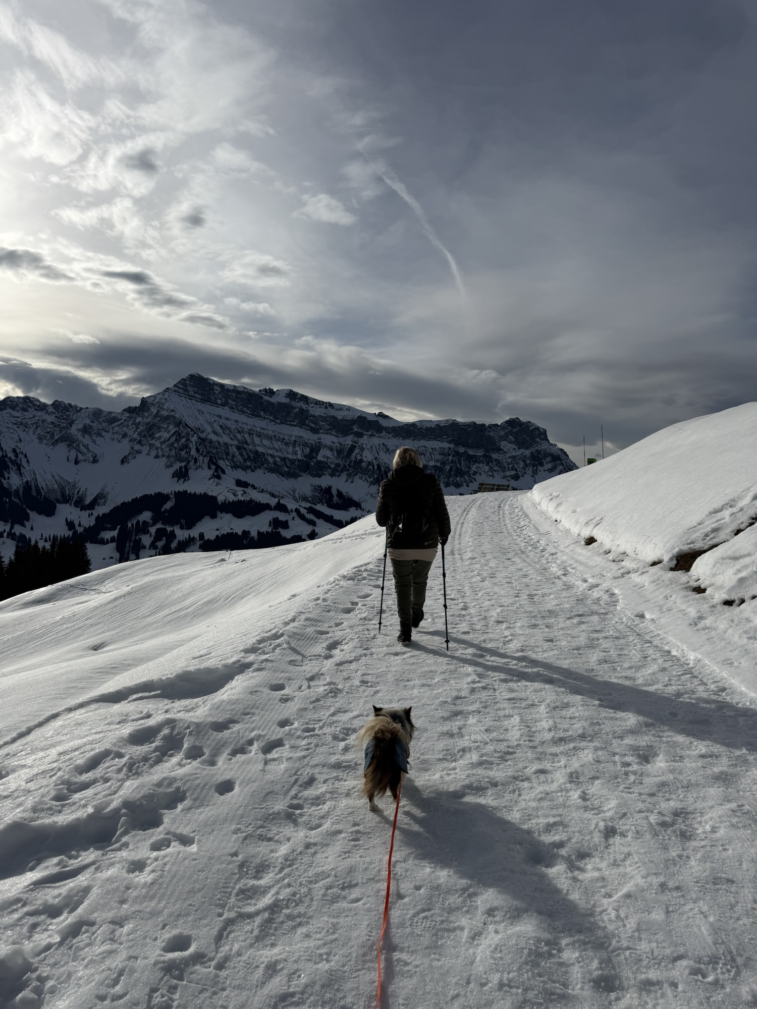 Winterwanderung mit Hund auf der Marbachegg – verschneiter Weg mit Bergpanorama