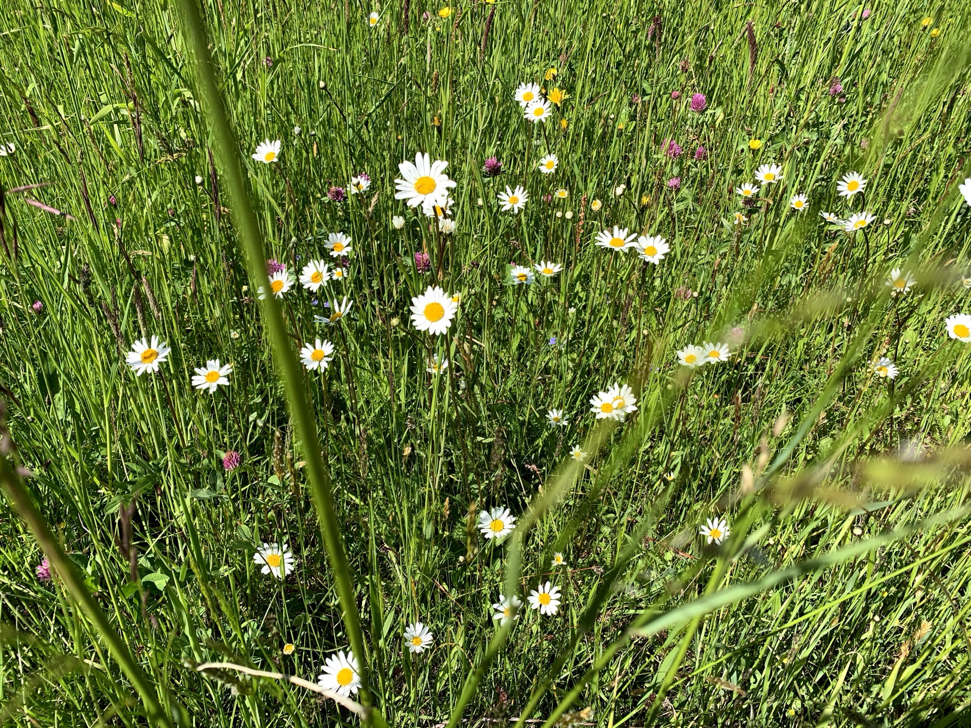 Blumenwiese mit Margeriten entlang des Rundwegs Bütschelegg