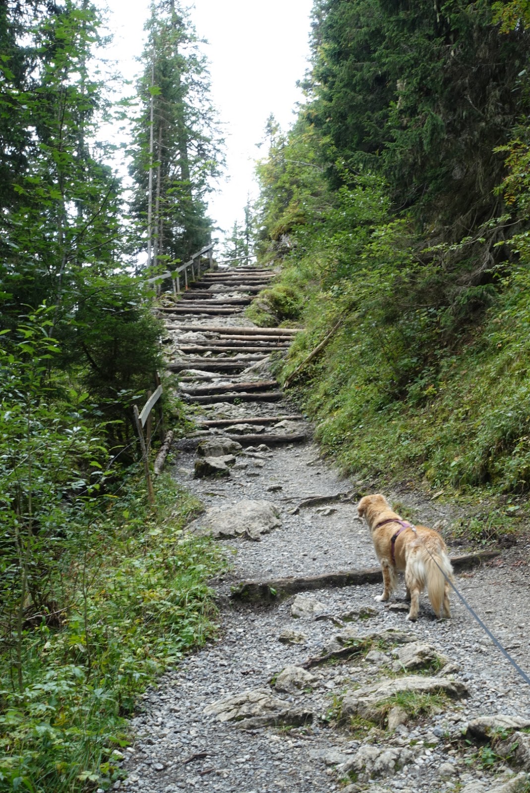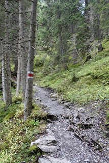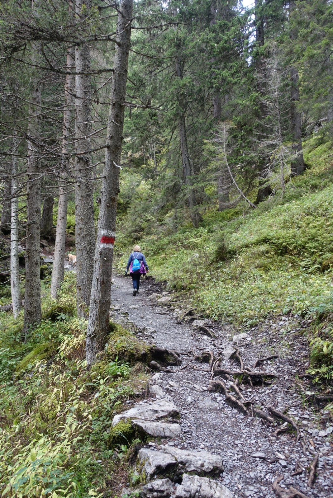 Die Wanderung zur Lobhornhütte wurde mit 3 km angegeben und 470 Höhenmeter. Bei uns wurden es dann 5km. Mit einem leichten Anstieg geht es durch den Wald. Kurz vor dem Kraftort Chüebodmi erreichen wir einen steilen «Treppen-anstieg». Pädu legt kurzerhand ein HIT- Training ein und springt diese Stelle hoch. Auch Sarah hat ein schnelleres Tempo als ich und Mama; wir zwei sind halt wie immer etwas gemütlicher unterwegs.