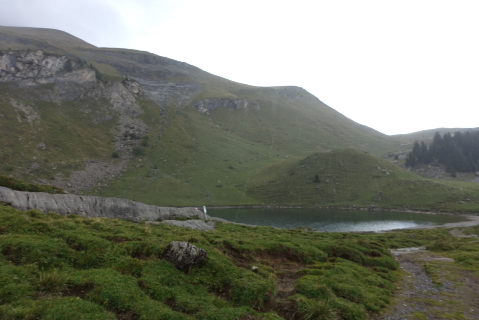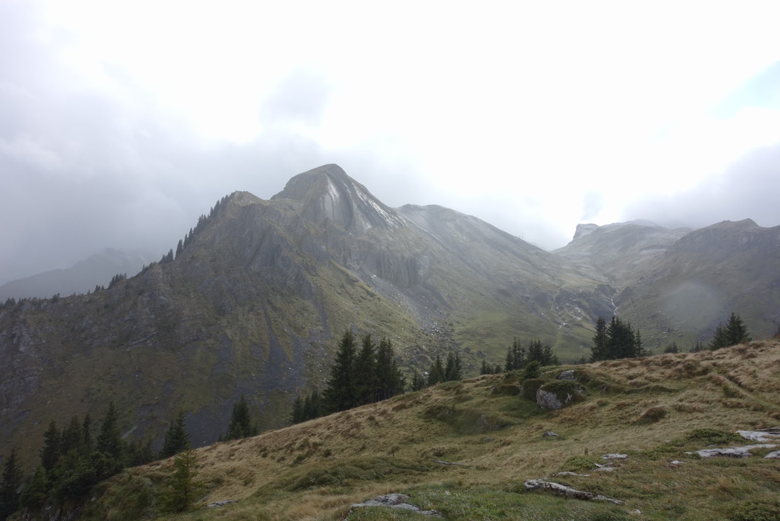 Nach ein bisschen mehr als einer Stunde erreichen wir dann das Sulsseewli. Von hier aus Blicken wir noch an den «Herzberg» . Leider versperren uns die Wolken den Blick auf die Lobhörner. Die Lobhörner sind auch vom Skigebiet Jungfrau aus gut sichtbar. Von dort aus sehen die Lobhörner aus wie ein Fuss. Für mich war es daher immer der «Fussberg». Ich hätte die Lobhörner gerne einmal aus der Nähe gesehen. Ich werde wohl oder übel nochmals hierherkommen müssen.