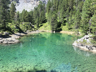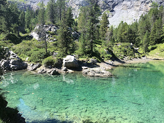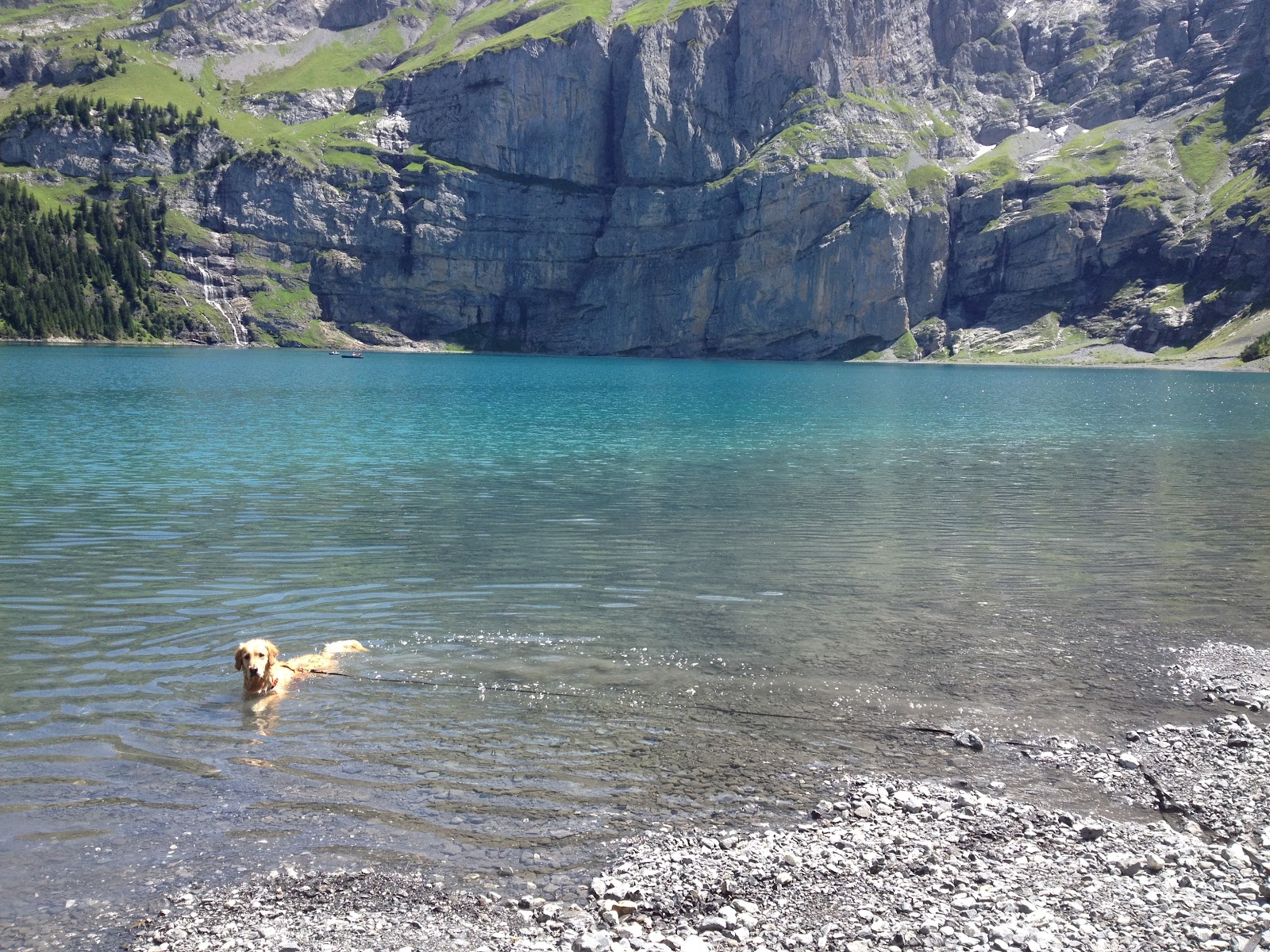Eine kleine Wanderung mit Shila führte mich im September 16 zum Arvenseeli. Von prächtigen Arven umgeben, inmitten einer grossartigen Bergwelt, liegt das kleine Arvenseeli. Am schönsten ist der See von Mai bis Juli. Später kann es auch möglich sein, dass er bereits ausgetrocknet ist. Wir hatten im Herbst Glück und das Seeli zeigte sich noch mit strahlendem, dunklem und türkisfarbenem Wasser. Von der Luftseilbahn von Kandersteg bis Sunnebühl aus, ist der See in ca. 45 Minuten erreichbar. Da es sehr heiss war und Shila die Hitze nicht mehr gut verträgt, haben wir die Bahn variante bevorzugt und sind nicht hochgelaufen. Der See beeindruckt vor allem durch sein tiefes Blau. Er ist dadurch ein sehr beliebtes Fotosujet geworden. Ich werde den See sicher nochmals besuchen. Dann aber verbunden mit einer längeren Wanderung und wahrscheinlich auch einem Biwak.