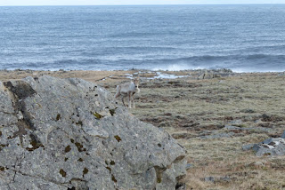 Wir fahren weiter in Richtung Höfn und beschliessen unterwegs noch zwei weitere Sehenswürdigkeiten anzuschauen. Zuerst machen wir einen Abstecher zu einem Steinmuseum, doch dieses hat leider bereits geschlossen. Heute scheinen wir etwas Pech zu haben. Wir nehmen nun den letzten Punkt in Angriff. Doch auch dieser wird ein Reinfall. Bei der angekündigten Sehenswürdigkeit handelt es sich um eine winzige und leider nicht wirklich besondere Kirche, irgendwo im nirgendwo. So fahren wir also weiter Richtung Höfn. Unterwegs sehe ich ein Schild «Achtung Rentiere» und tatsächlich, nur nach wenige Meter sehen wir wirklich ein Rentier. Wir machen sofort Halt und ich packe meine grosse Kamera aus. Wir sind beide total begeistert und machen viele Fotos. Das Rentier ist alleine unterwegs, was uns erstaunt. Wir beschliessen in unsere Google Liste auf zu nehmen warum Rentiere alleine unterwegs sind.