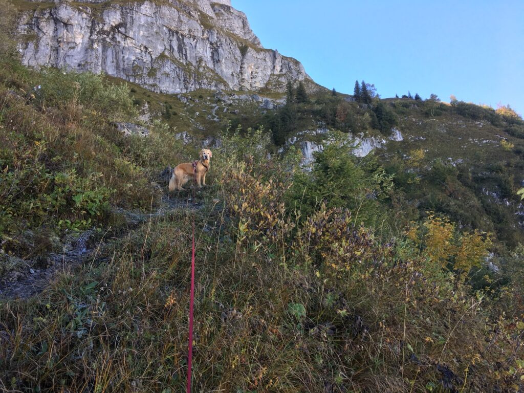 - Gefahren / Sicherheit: Bei Gratpassagen Leine empfohlen
