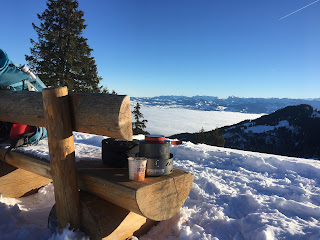 Durch das Schneestapfen habe ich aber sehr schnell wieder warm bekommen. Auf dem Rückweg sind mir dann einige Schneeschuhwanderer begegnet. Ich habe sie so sehr um ihre Schneeschuhe benieden. Alle Wanderer haben mich angesprochen, wo ich den übernachtet hätte. Die meisten waren erstaunt, dass ich tatsächlich im Zelt und nicht in einer Hütte übernachtet hatte. Die Reaktionen waren aber alle gleich. Alle waren sehr interessiert an meinen Erlebnissen und haben mich für meinen Mut gelobt.