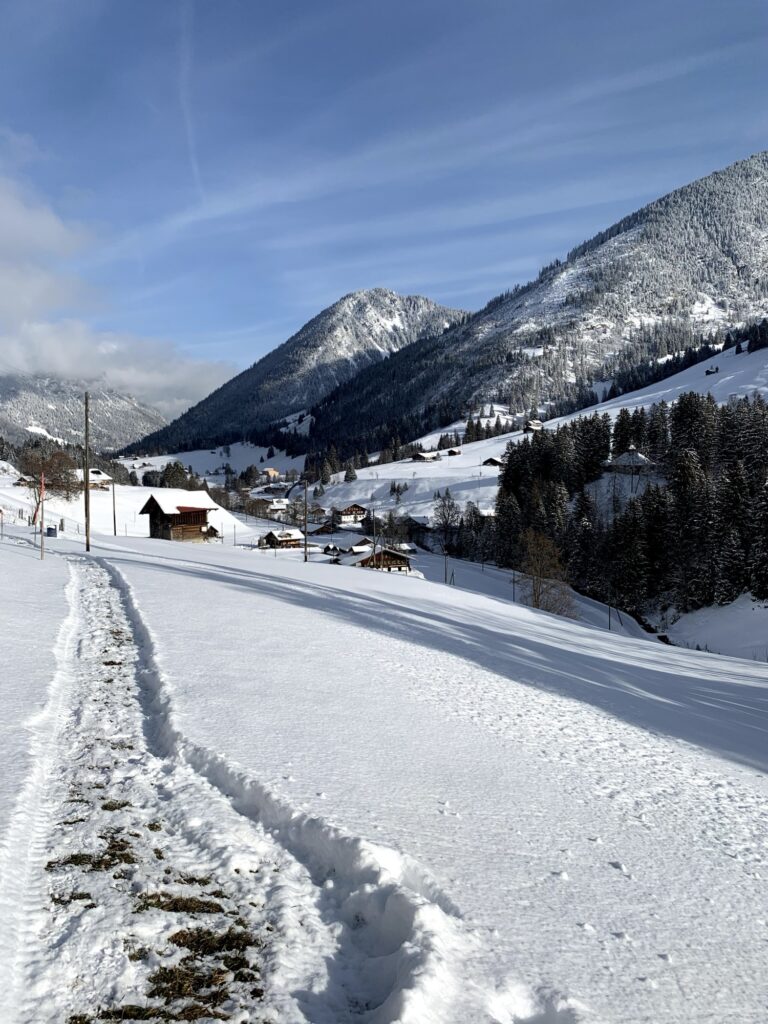 Die Winterwanderung auf der Grimmialp gehört zu jenen Touren, die mich nachhaltig beeindruckt haben. Nicht wegen ihrer Länge oder Schwierigkeit, sondern wegen der Stimmung. Ich bin diese Route gegangen, als Nuo noch ein Baby war, und wir hatten an diesem Tag genau das Winterwetter, das mein Herz höherschlagen lässt: eine weisse, ruhige Landschaft und ein tiefblauer Himmel. Genau solche Tage liebe ich.