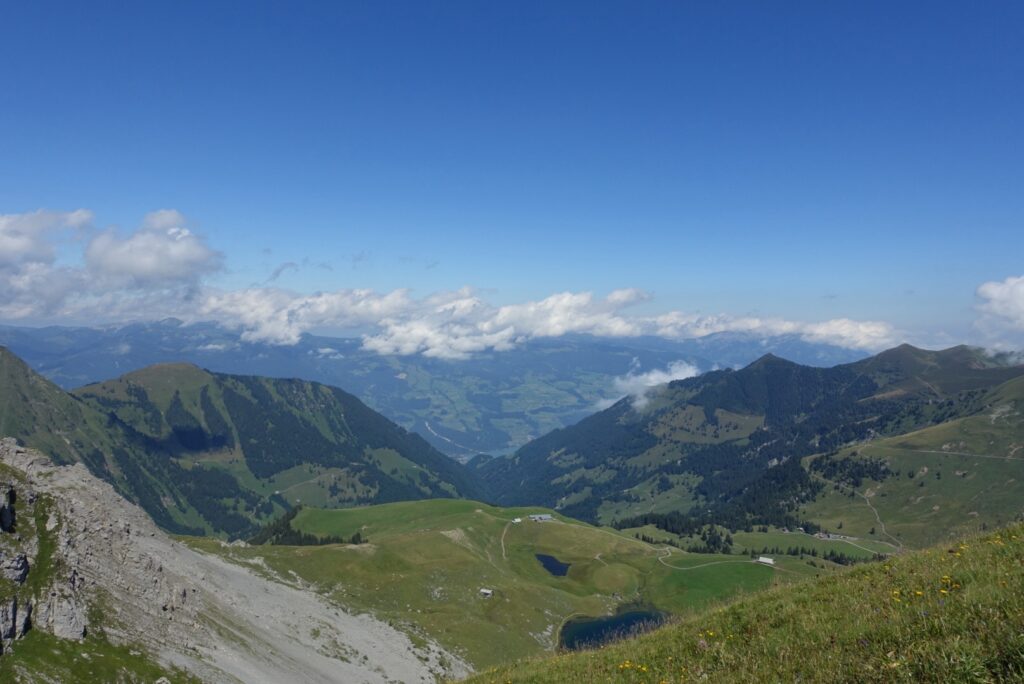 Blick auf den Seefeldsee aus der Höhe bei der Wanderung zum Mittelpunkt der Schweiz