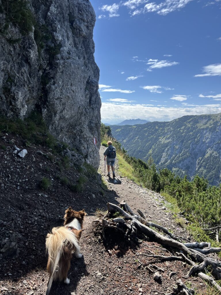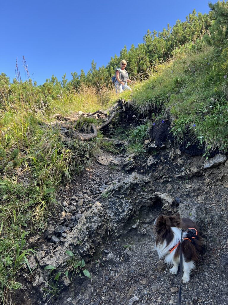 Im Sommer 2024 durfte ich ein paar Tage bei Silvia in der Alpenperle verbringen – und sie war es auch, die mich motivierte, meinen lang gehegten Wunsch endlich umzusetzen. Gemeinsam machten wir uns auf den Weg. Mama begleitete uns mit meinem Hund Nuo, so weit es für sie möglich war. Da ein kurzes Stück des Weges seilgesichert ist, war für sie schon im Vorfeld klar, dass sie Respekt davor haben würde.