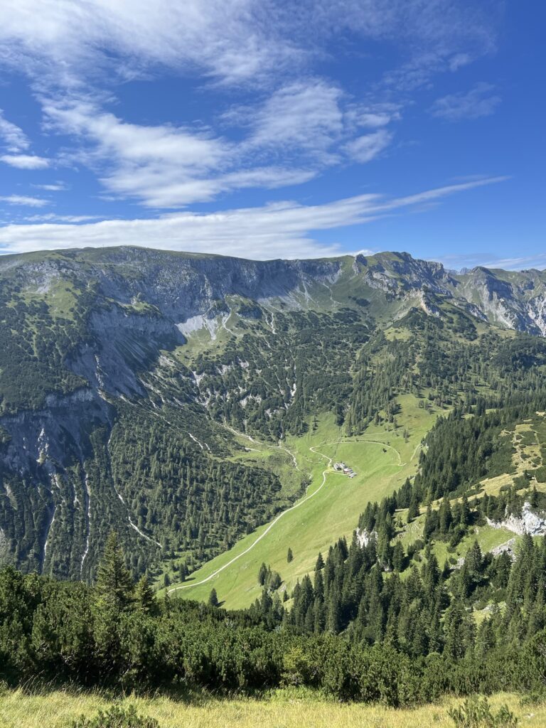 Für den Rückweg wählten wir den direkten, steileren Abstieg zurück zur Bärenbadalm. Auch hier ließen wir uns Zeit – lieber gemütlich und sicher. Auf der Alm gönnten wir uns ein wohlverdientes Zvieri, bevor es mit der Gondel wieder hinunter nach Pertisau ging.